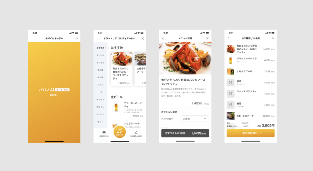 飲食店の利益率・リピート率を改善するモバイルオーダーPOSの、顧客が使用するモバイルオーダーのUIを担当しました。